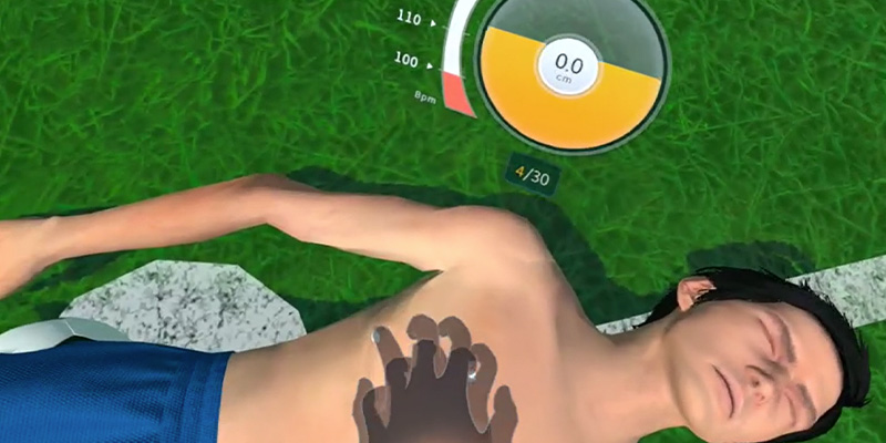 Evalúa si el pecho del paciente virtual se eleva adecuadamente durante la respiración artificial.